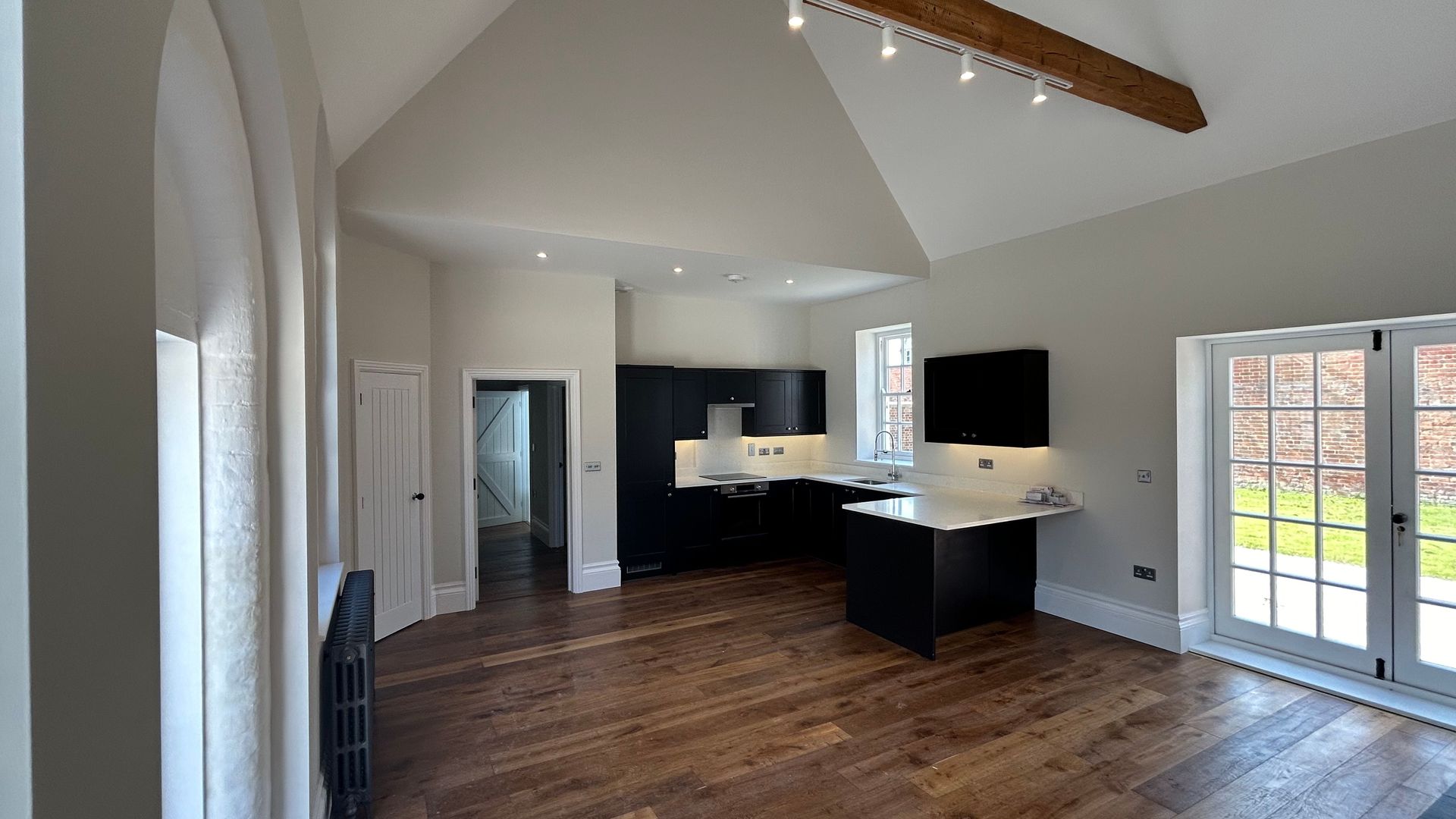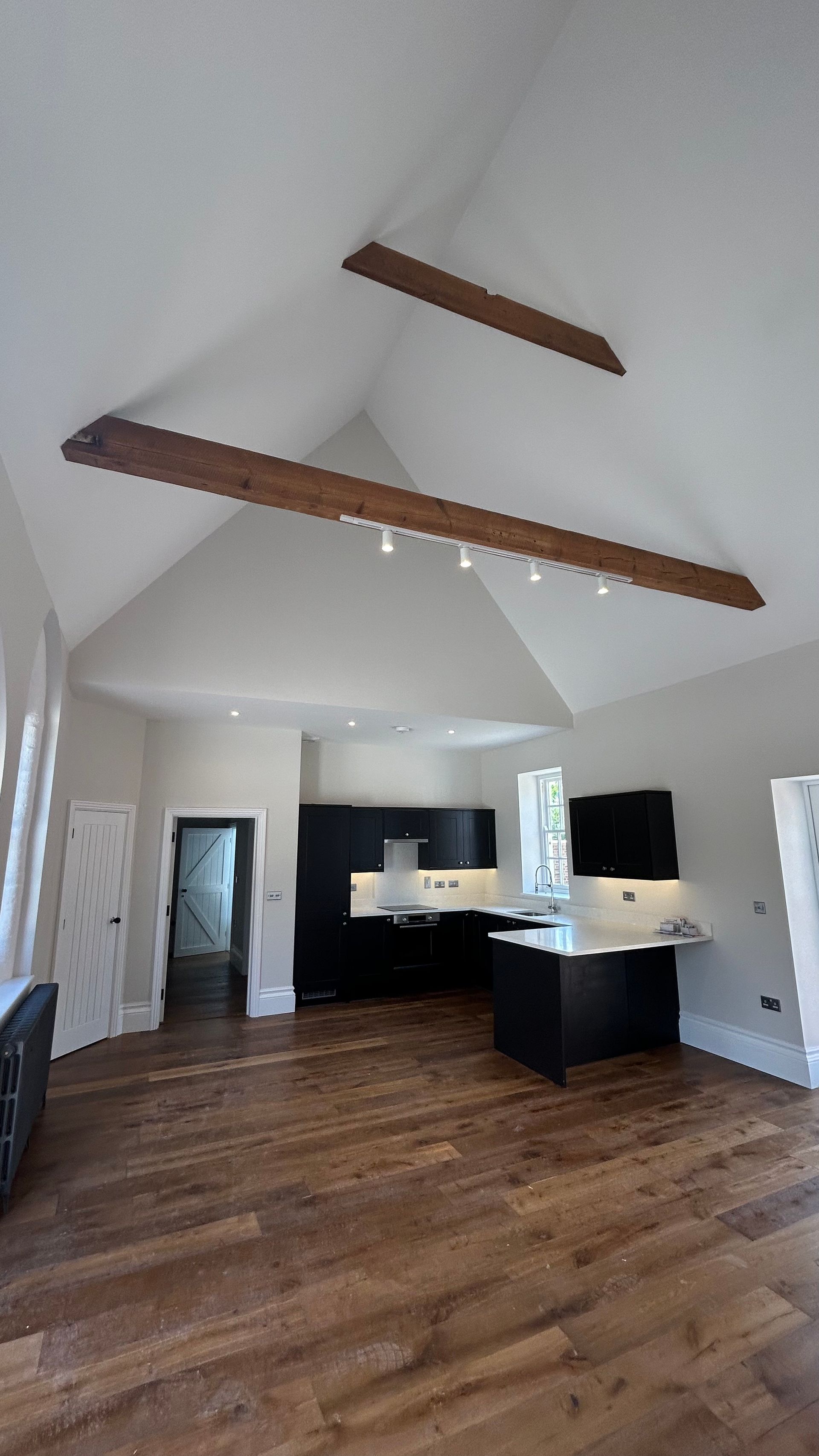 Barn style high ceilings and exposed beams.Large private garden.