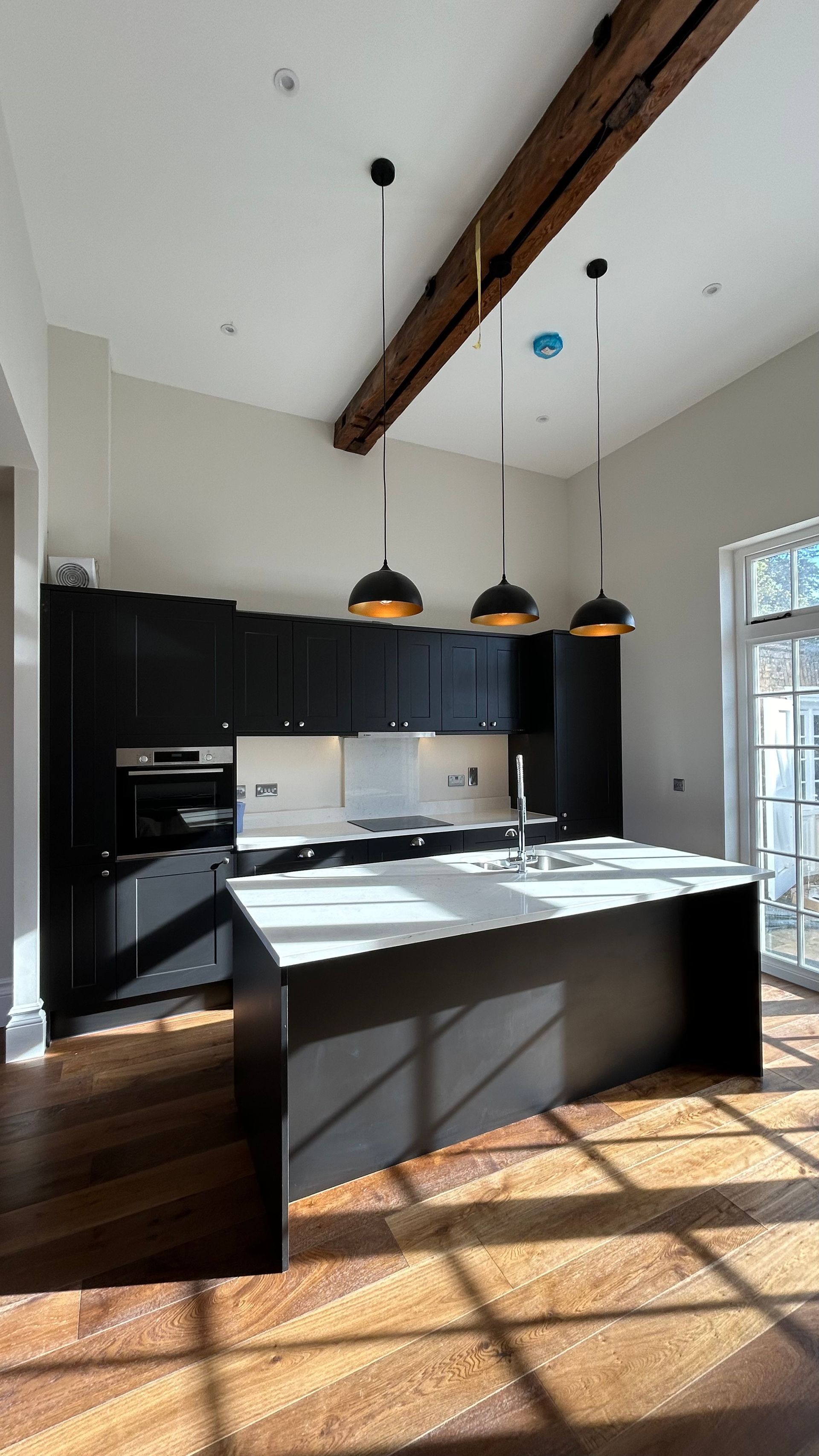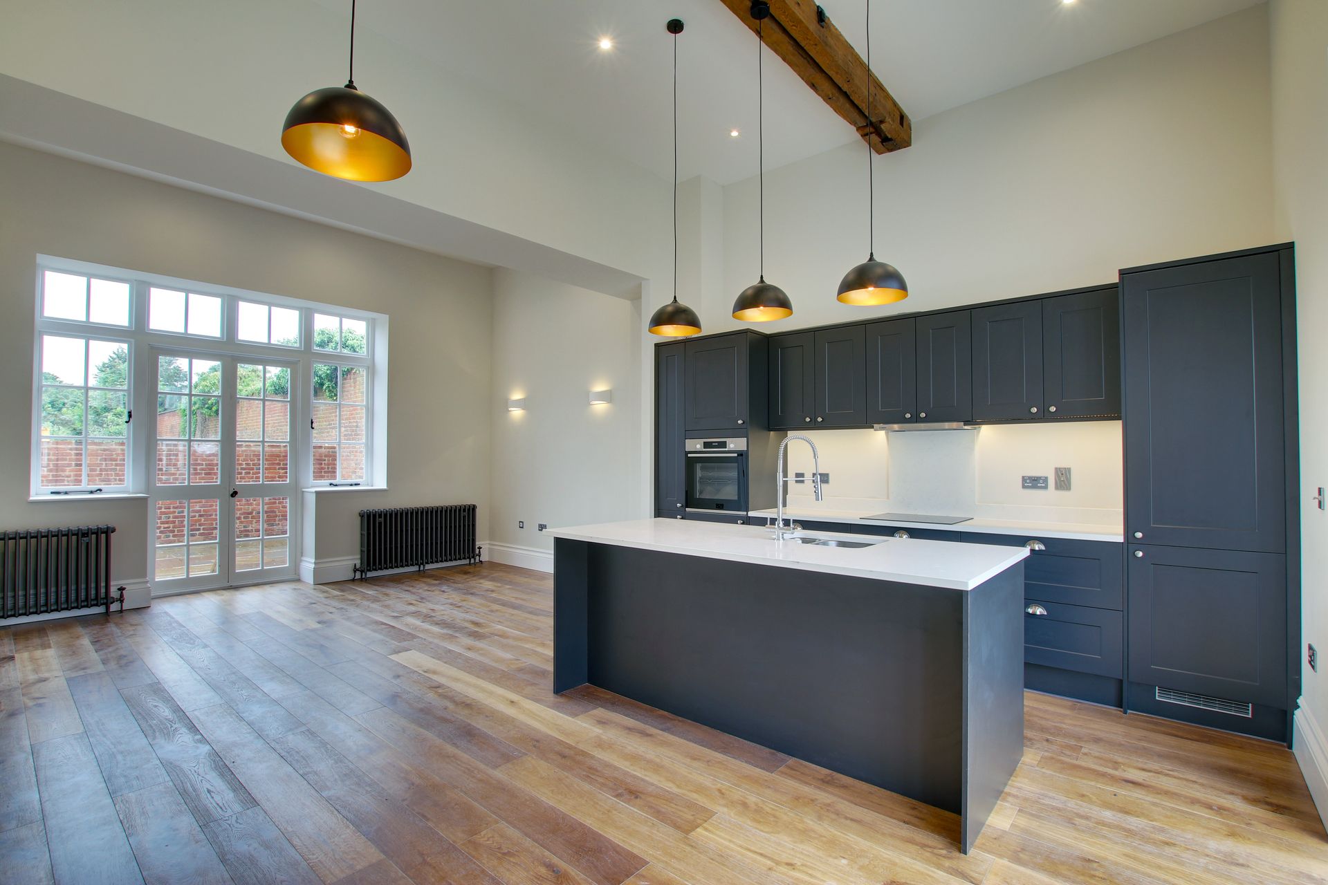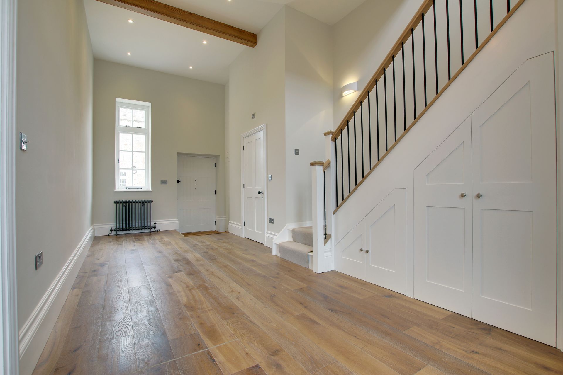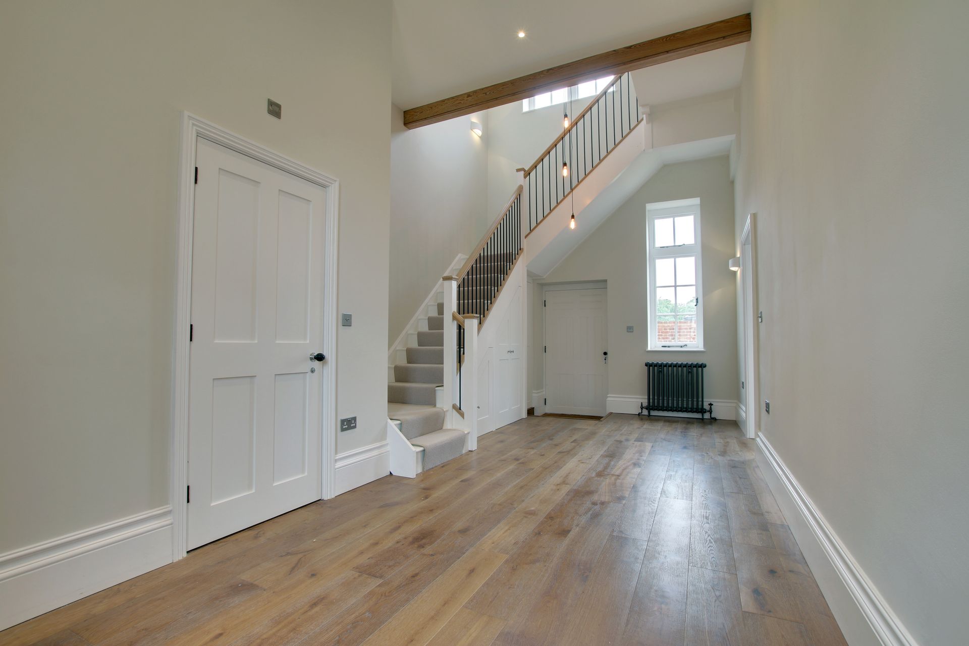 High ceilings, original beams and period fireplaces make it really unique.